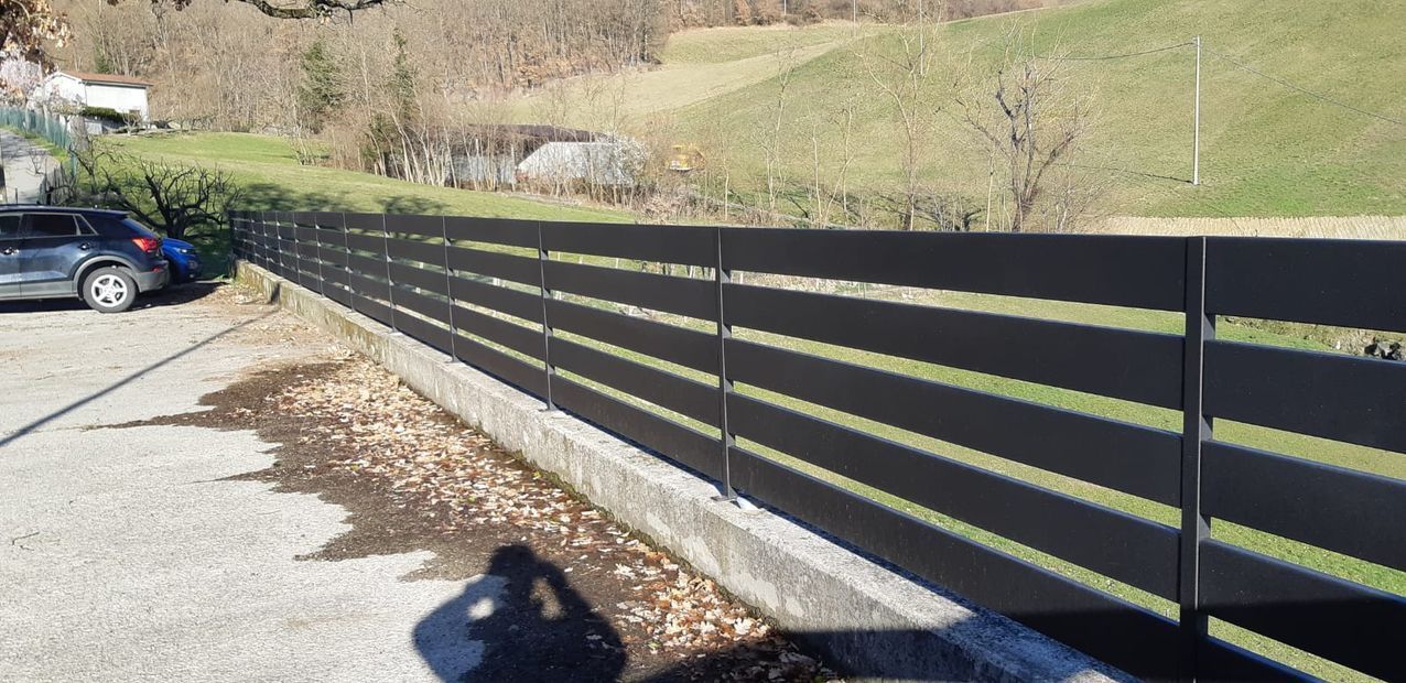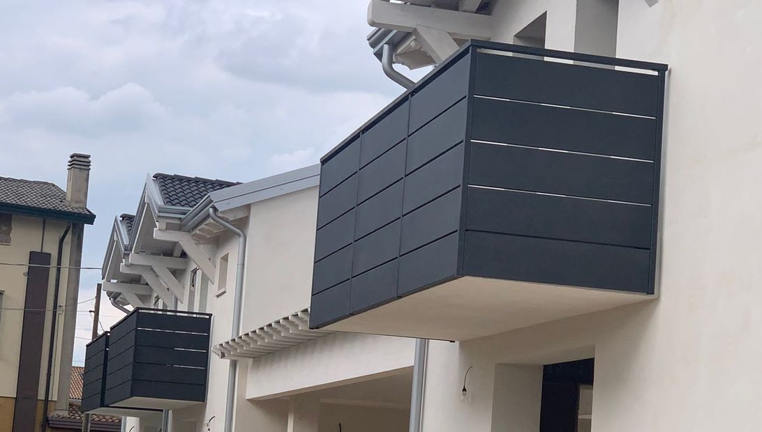 Le linee di parapetto sono sviluppate in continuità con i progetti delle recinzioni, così da ottenere un effetto visivo integrato e armonioso.